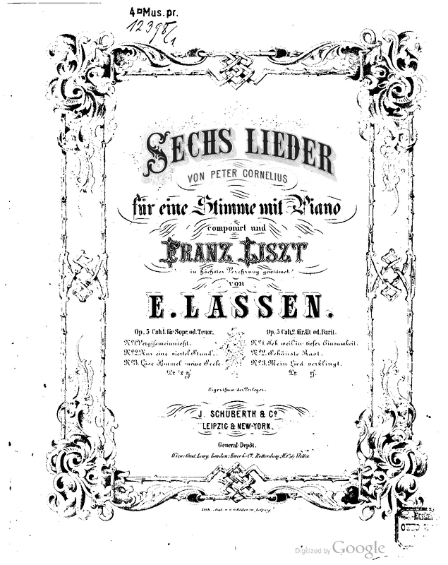 Klavierwerke, Band 9: Lieder-Bearbeitungen für Klavier zu zwei Händen (pp.184-89) Leipzig: Edition Peters, No. 3602a, n.d.[1918]. Plate 9885.