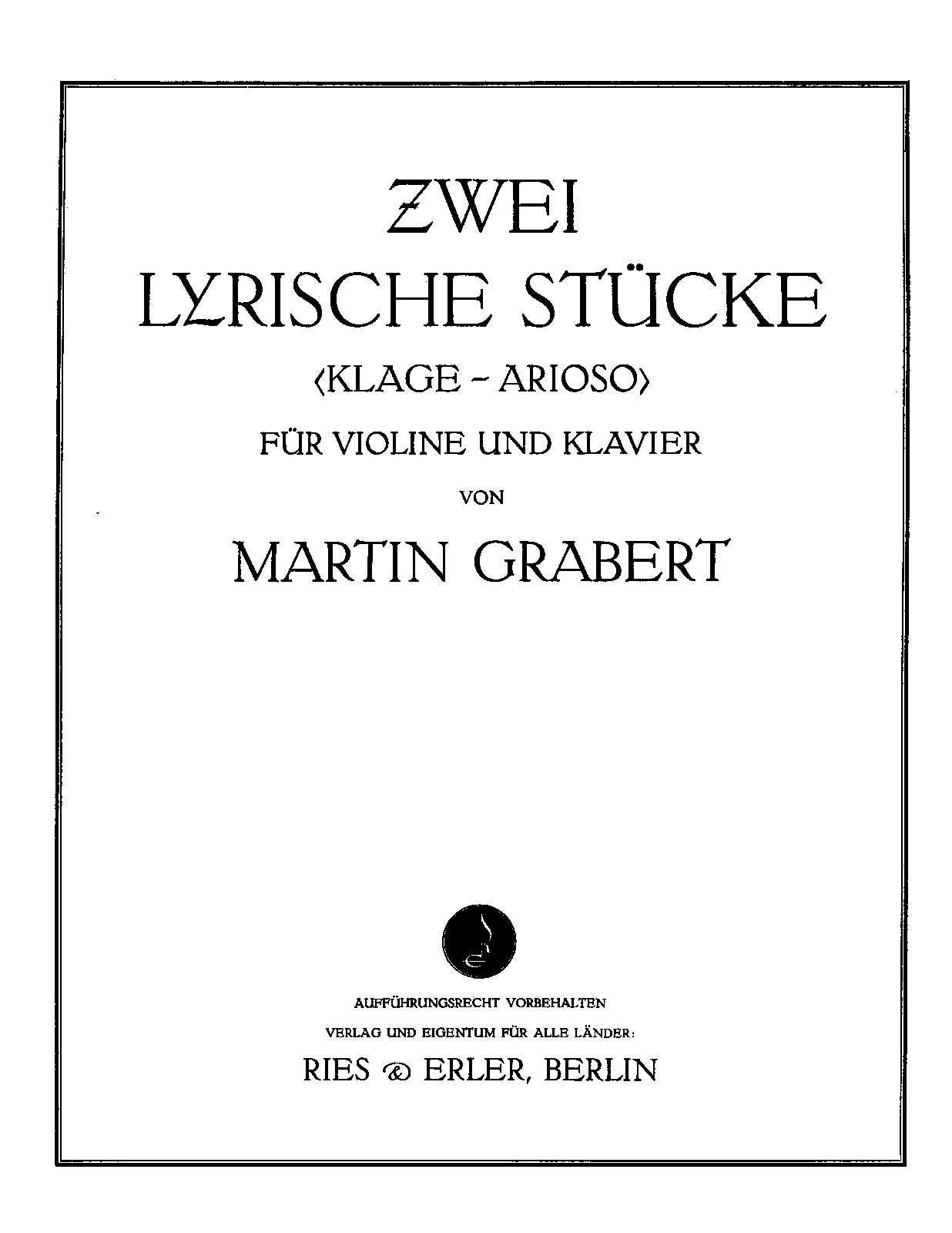 | Genre Categories | Pieces; For violin, piano; Scores featuring the violin; |