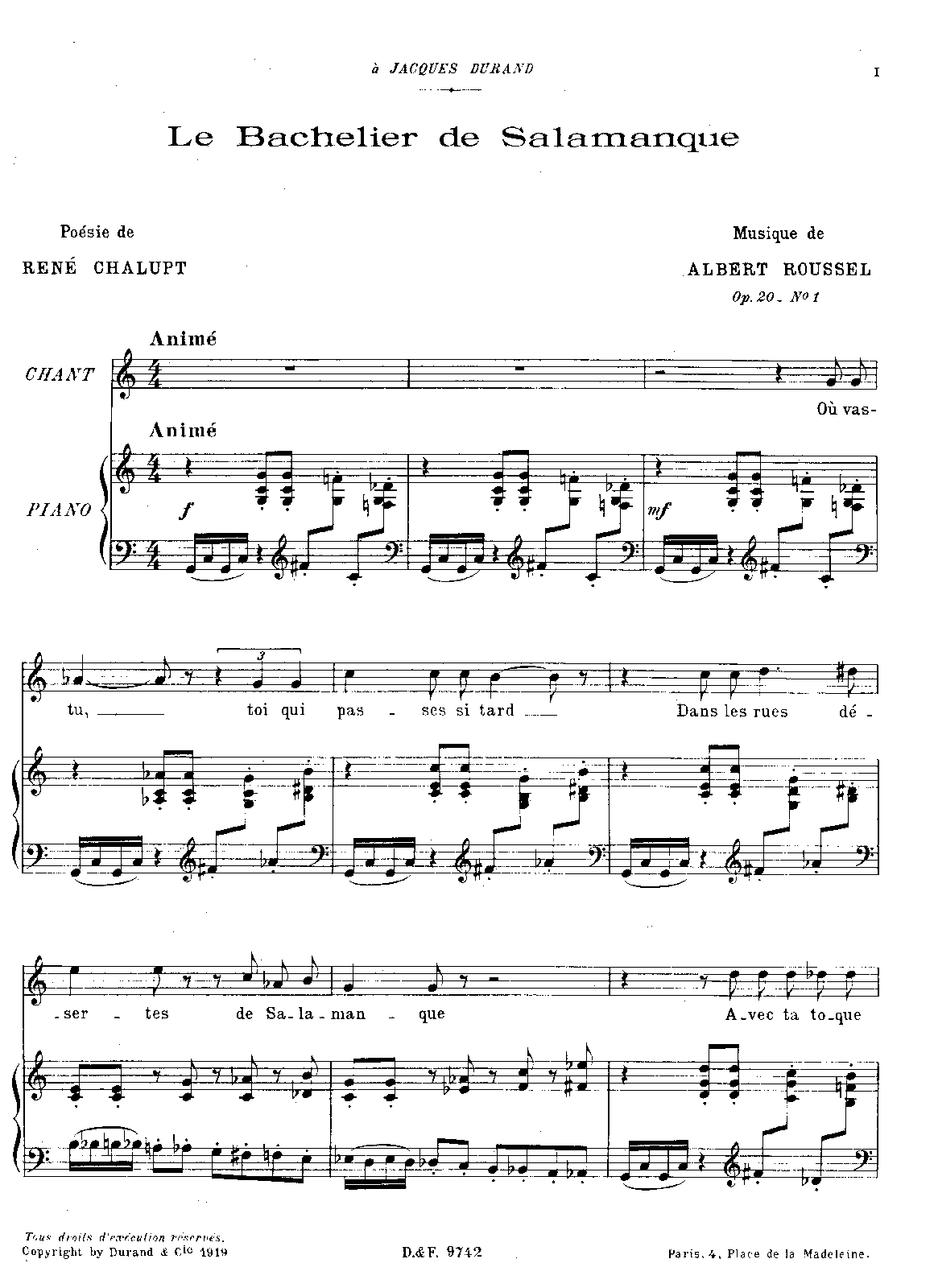 | First Performance. | 1919-12-27 in Paris, Salle des Agriculteurs, Société nationale de musique