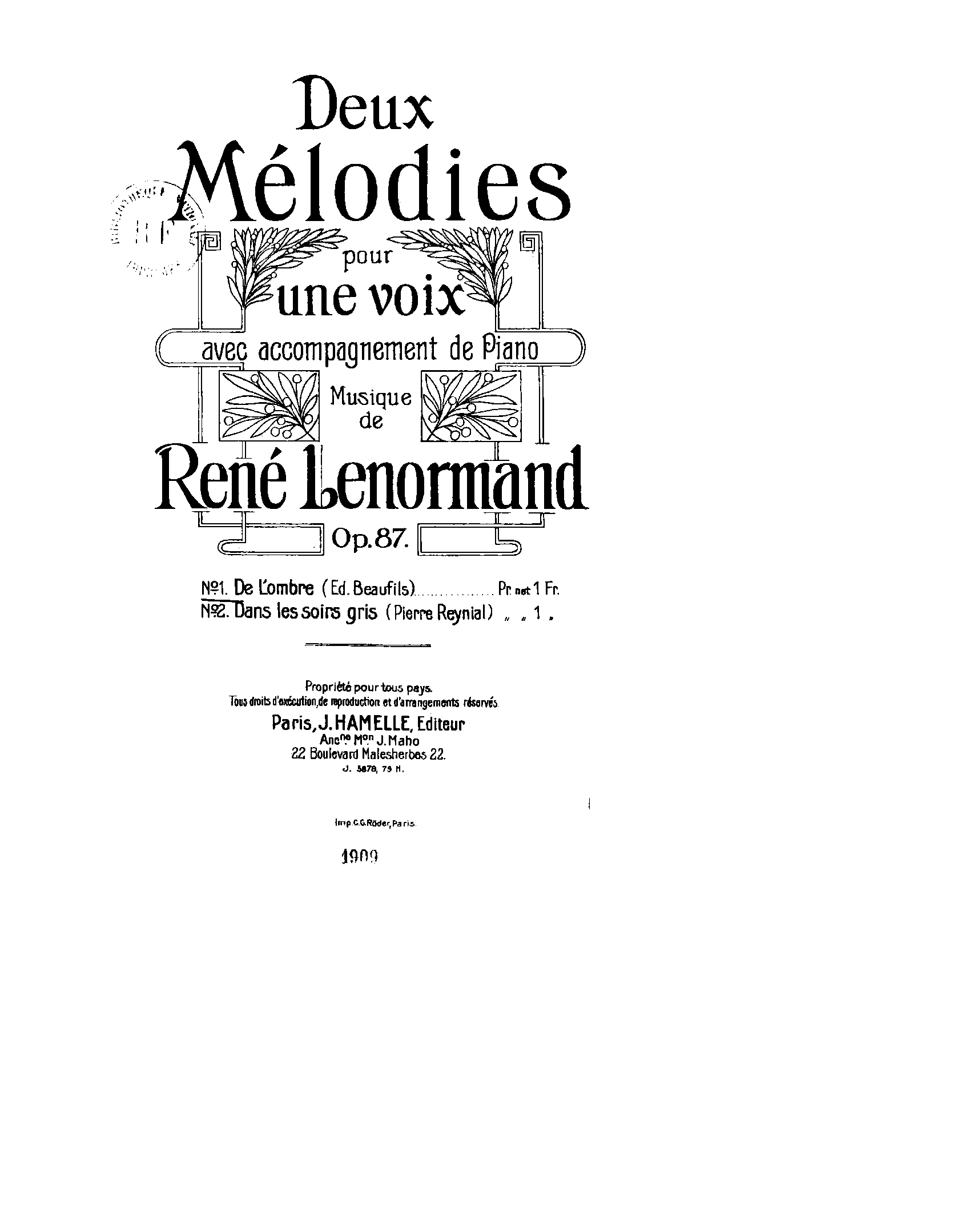 | Work Title | Deux mélodies |