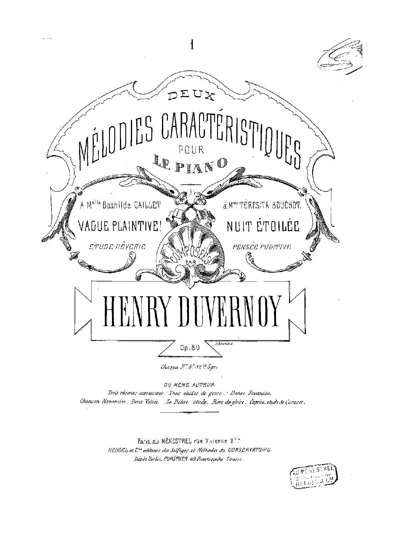 | Dedication | 1. à son élève Mademoiselle Bathilde Caillet 2. à Madame Teresita Bouchot |