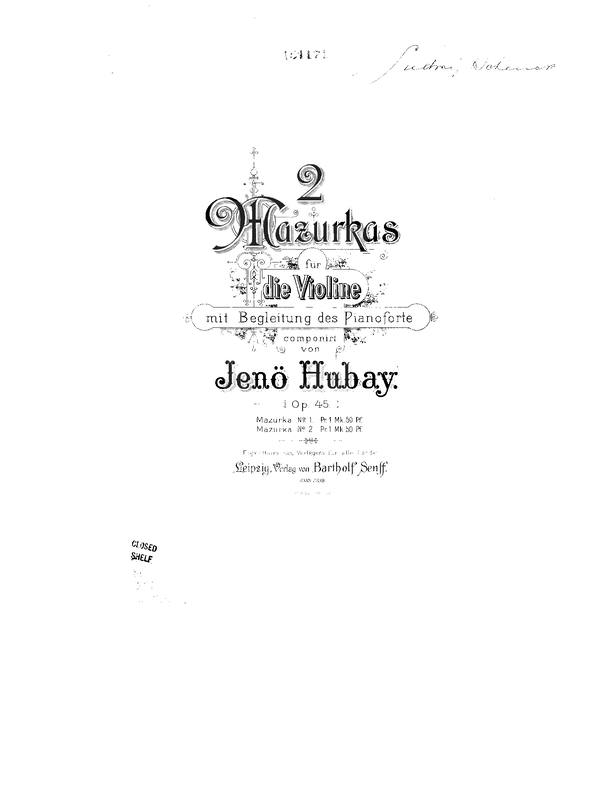 | Genre Categories | Mazurkas; Dances; For violin, piano; |