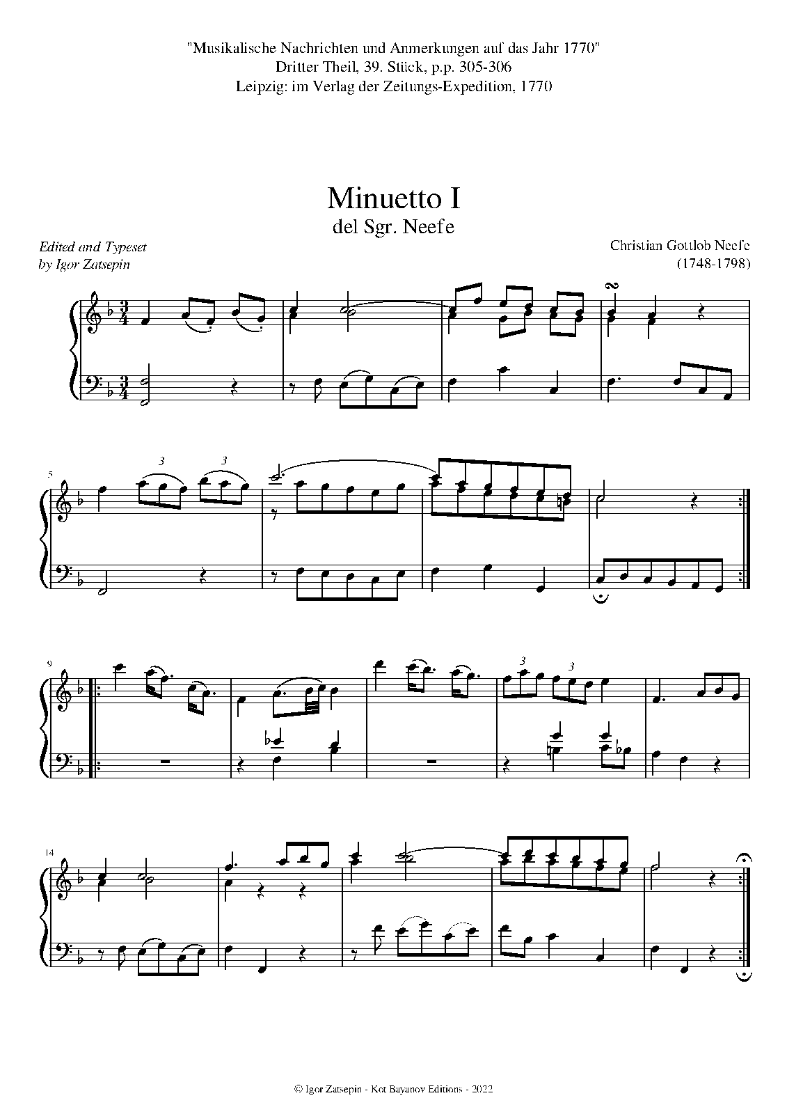 | Alternative. Title | Minuetto del Sgr. Neefe |
