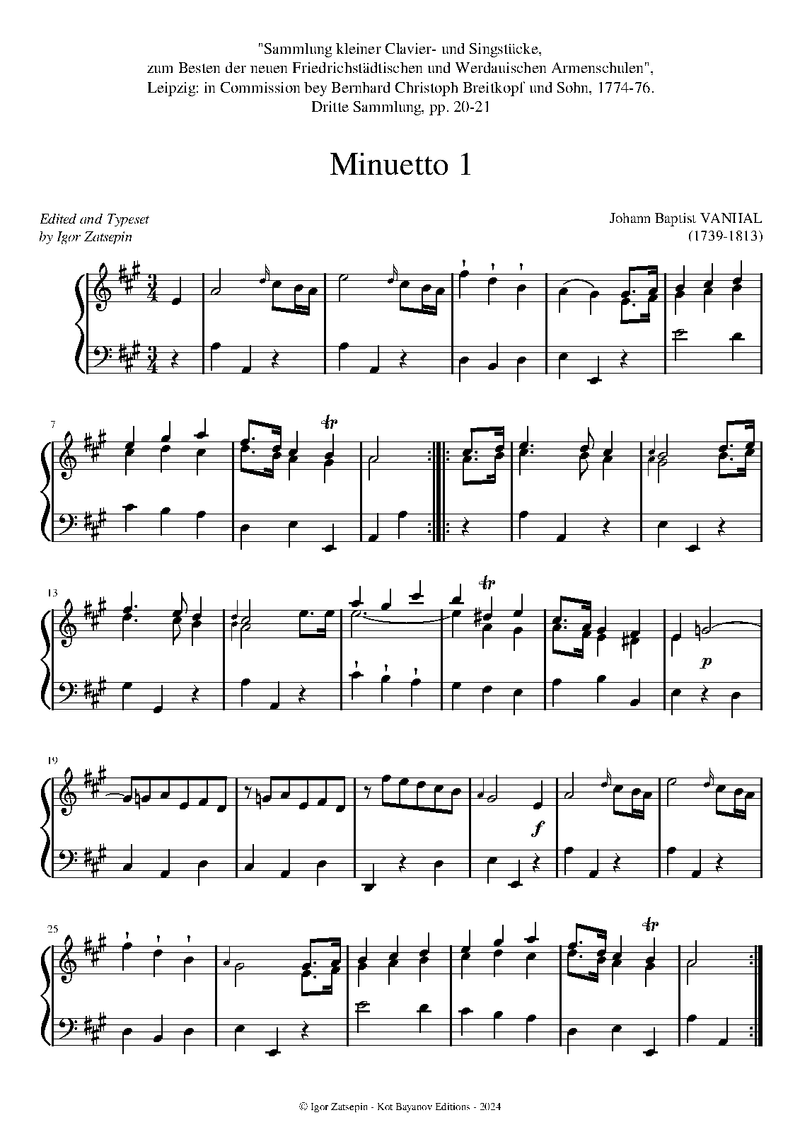 | Extra Information | "Sammlung kleiner Clavier- und Singstücke...", Breitkopf und Sohn, 1774-76 |