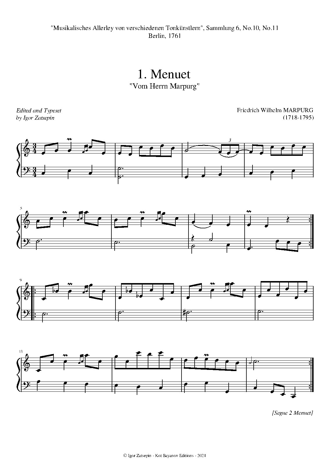 | Extra Information | "Musikalisches Allerley von verschiedenen Tonkünstlern", Sammlung 6, No.10, No.11 |
