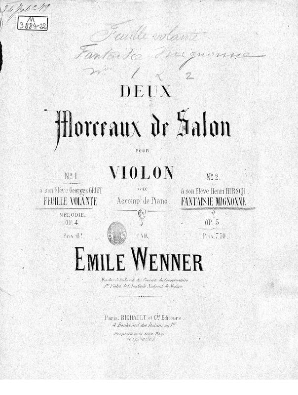 | Genre Categories | Pieces; For violin, piano; Scores featuring the violin; |