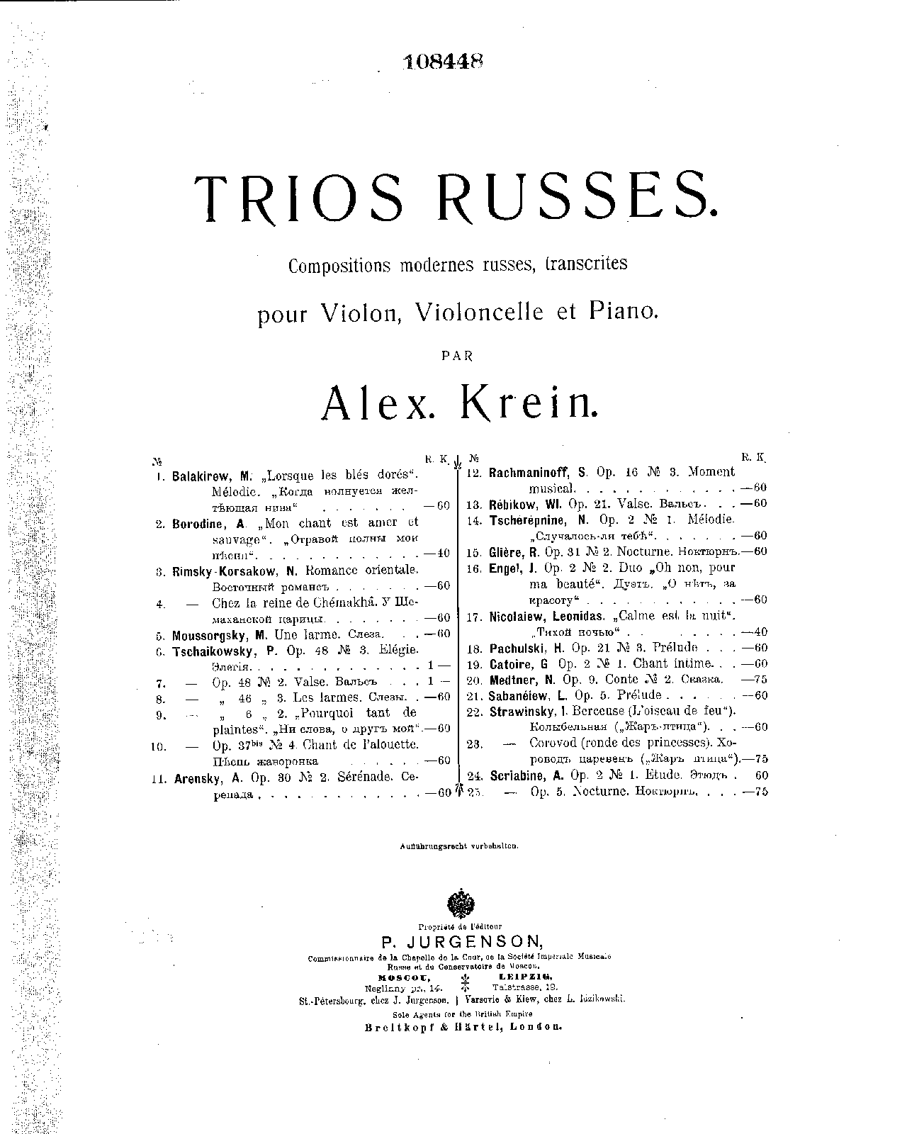 | First Publication. | 1893 - Moscow: Jurgenson |