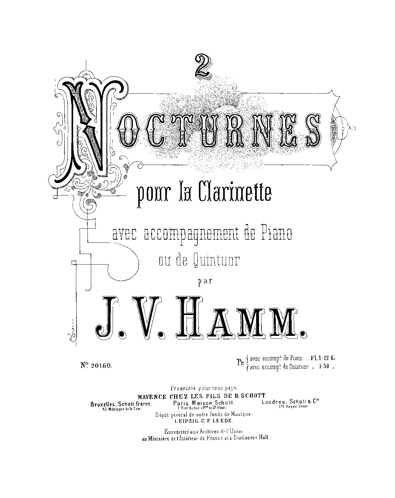 | Alternative. Title | 2 Nocturnes pour la clarinette avec accompagnement de piano ou de quintuor |