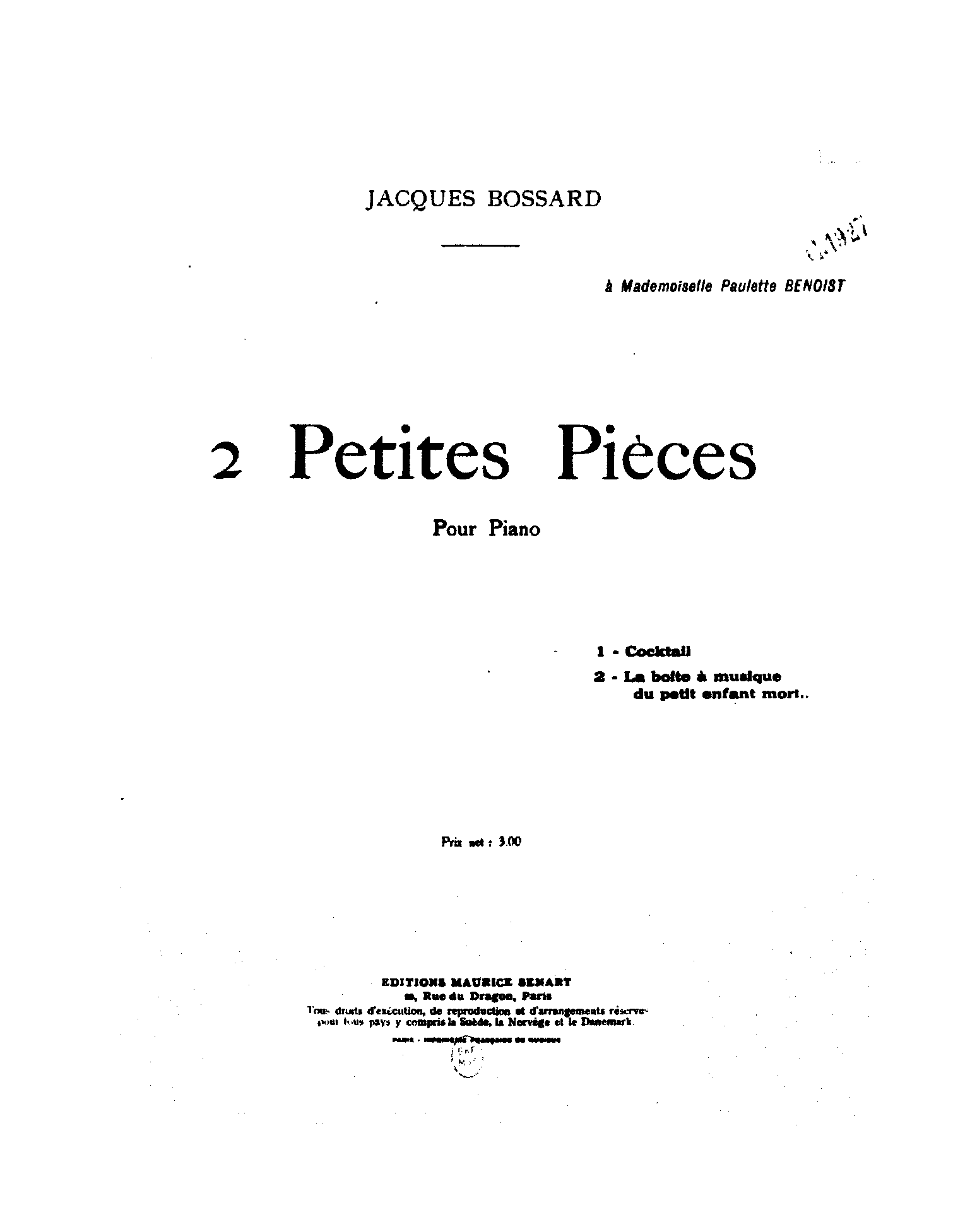 Publisher. Info. Paris: Editions Maurice Senart, n.d.[1927]. Plate E.M.S.7246.