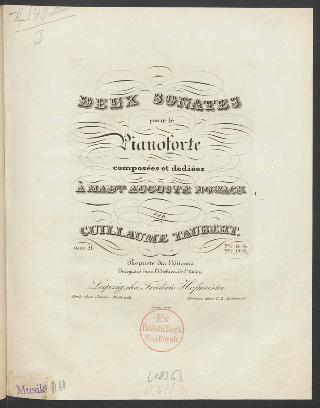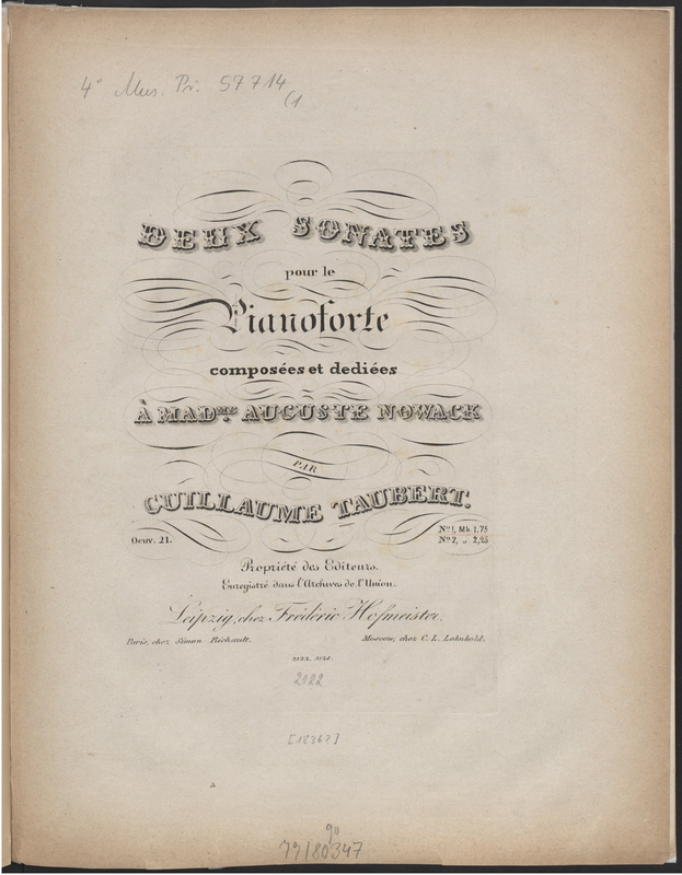 | Dedication | both sonatas: Madame Auguste Nowack |