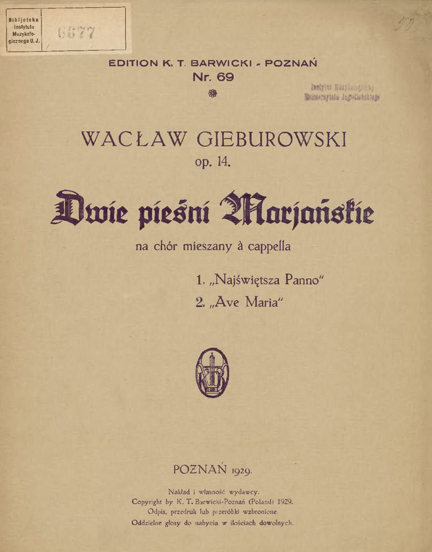 | Alternative. Title | Dwie pieśni marjańskie: Na chór mieszany à cappella |