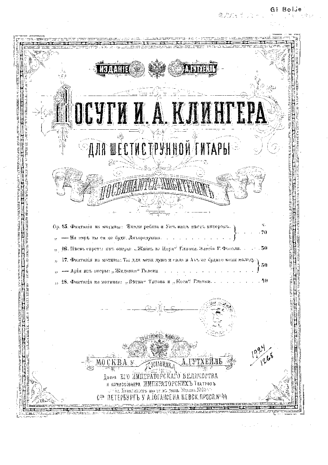 | Alternative. Title | Песнь сироты изъ оперы "Жизнь за Царя" Глинки. Элегия Г. Фогела. |
