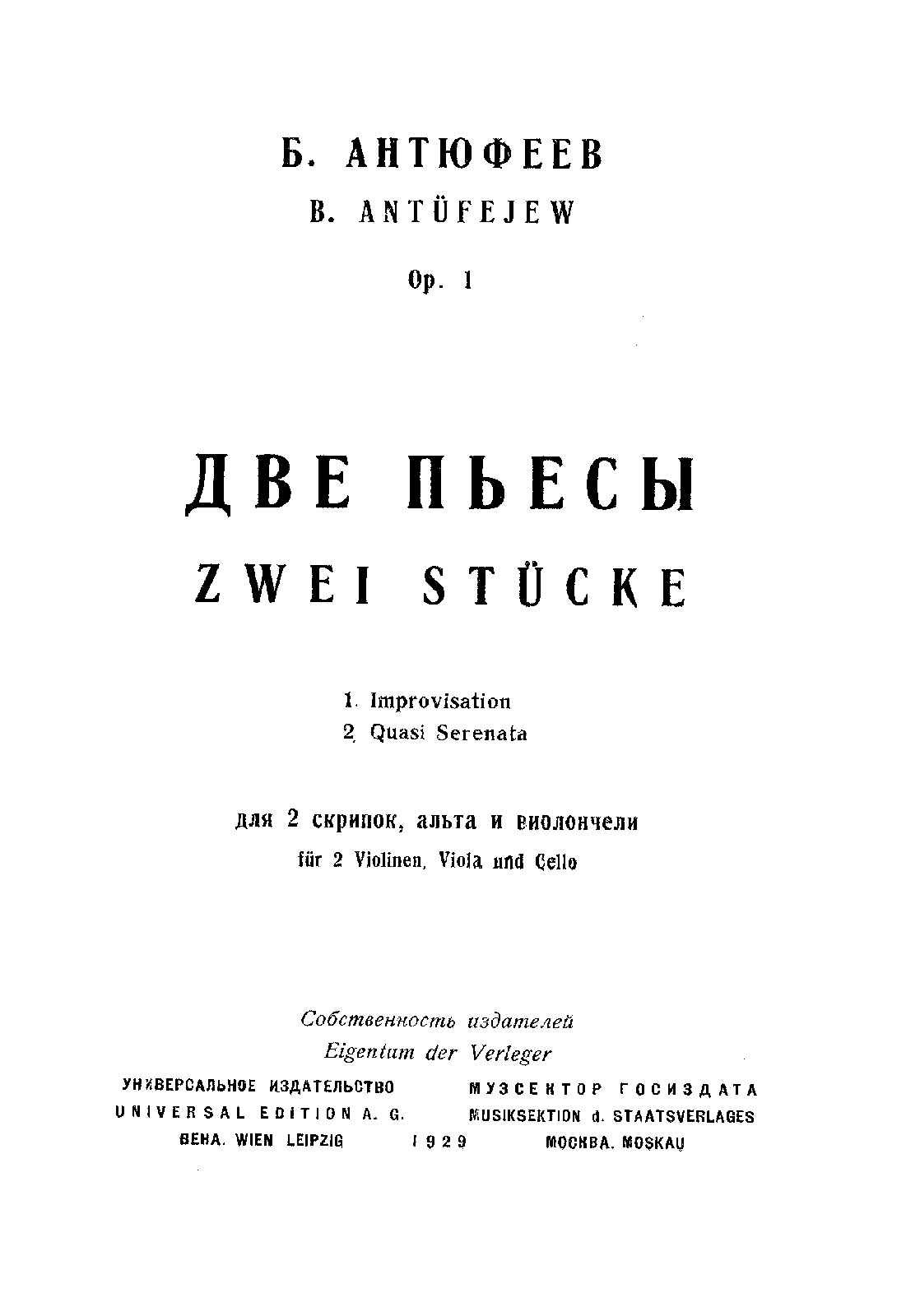 | Alternative. Title | Zwei Stücke; Две пьесы |