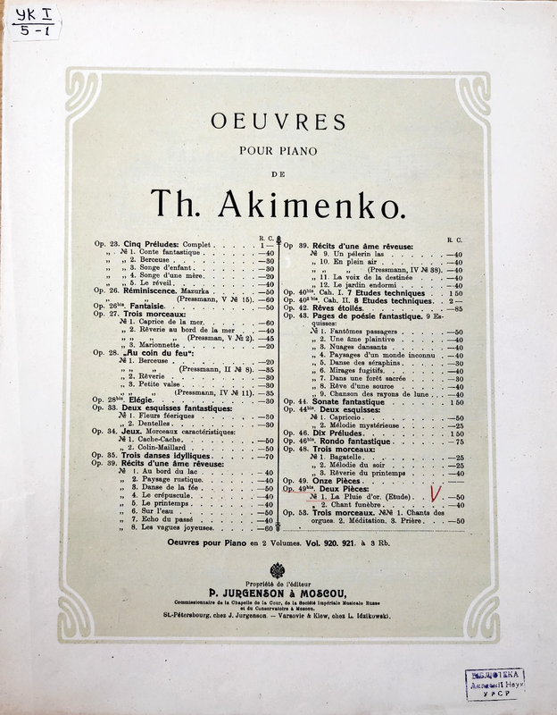 | Genre Categories | Pieces; Studies; Funeral music; |