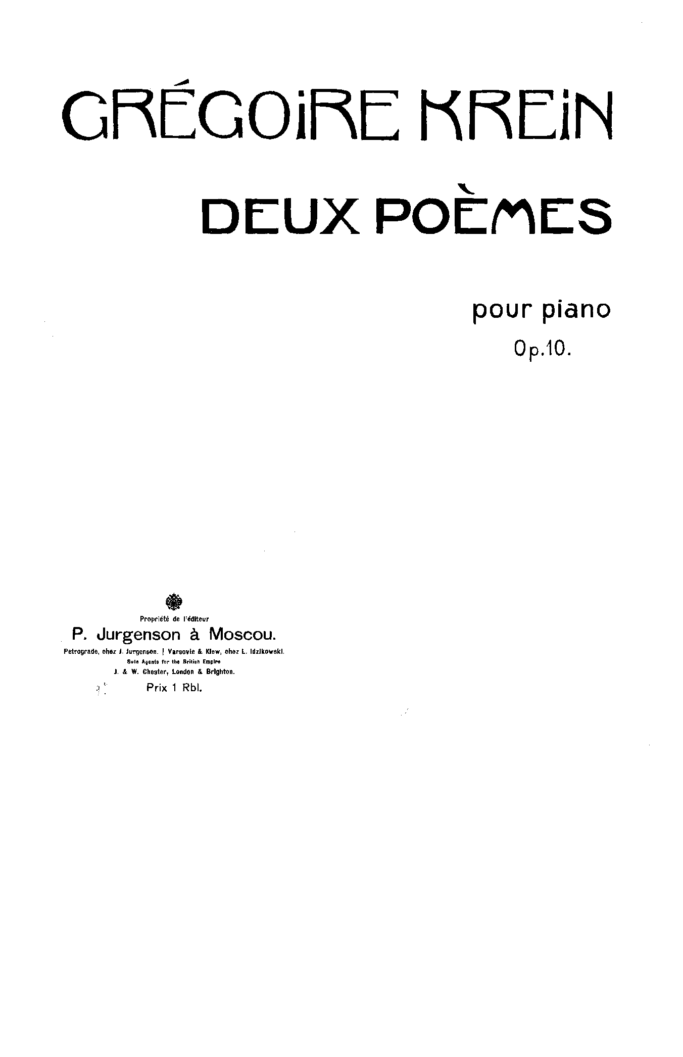 Moscow: P. Jurgenson, n.d.[1915]. Plate 37590.