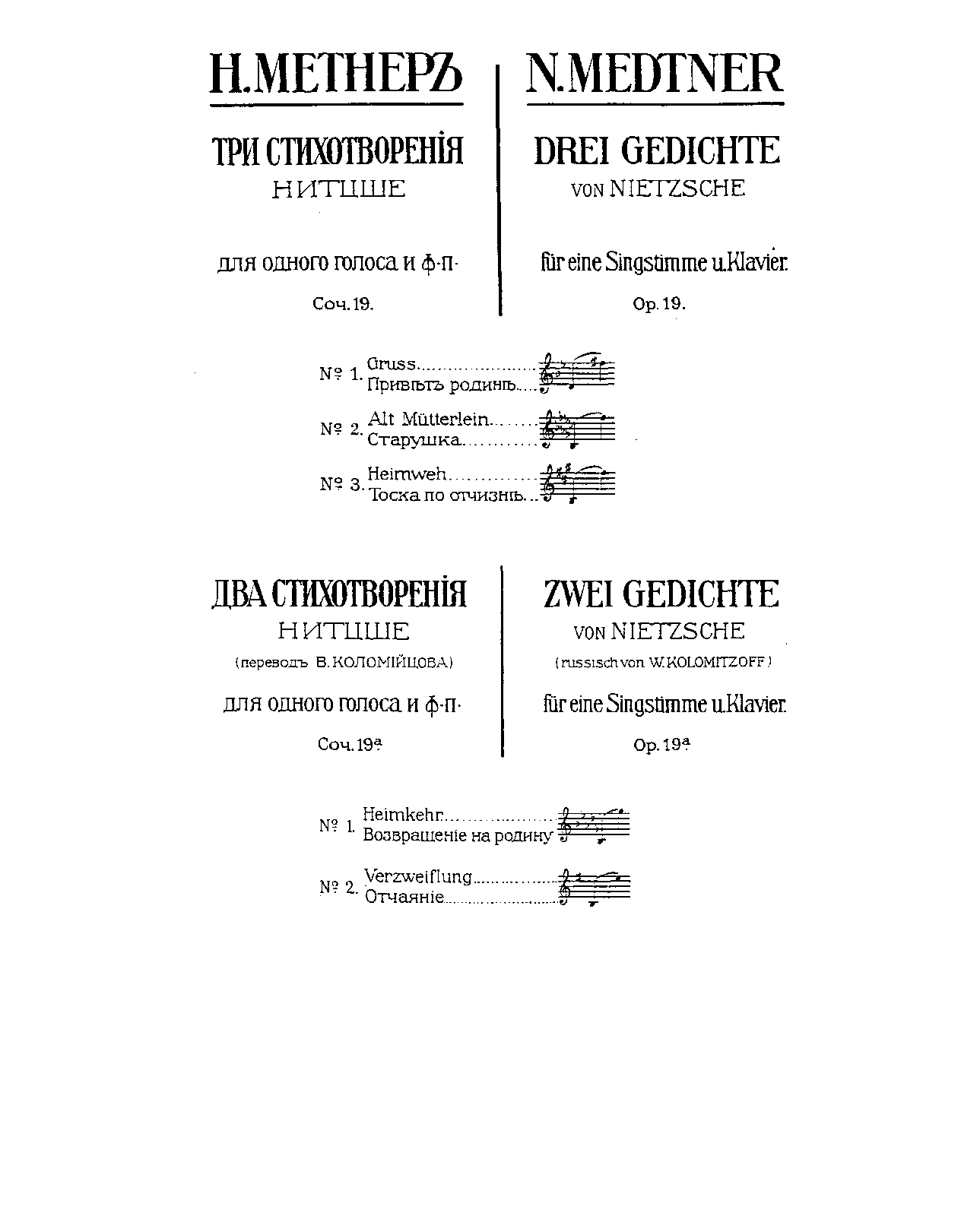 | Work Title | Dve stichotvoreniia Nittsshe Op.19a |