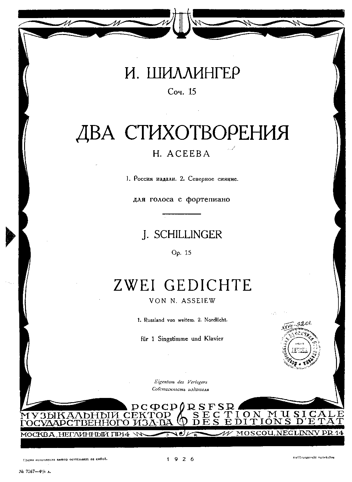 | First Publication. | 1926 - Muzgiz |