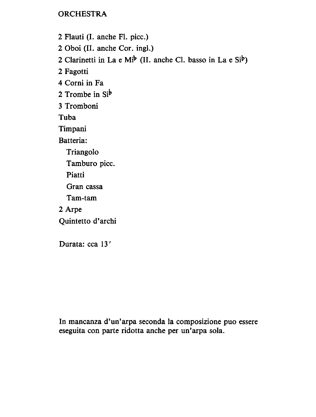 | Instrumentation | 2 flutes (1st also piccolo), 2 oboes (2nd also english horn) 2 clarinets (2nd also bass clarinet), 2 bassoons 4 horns, 2 trumpets, 2 trombones, tuba timpani, bass drum, cymbals, tam-tam, triangle, small drum, 2 harps, strings |