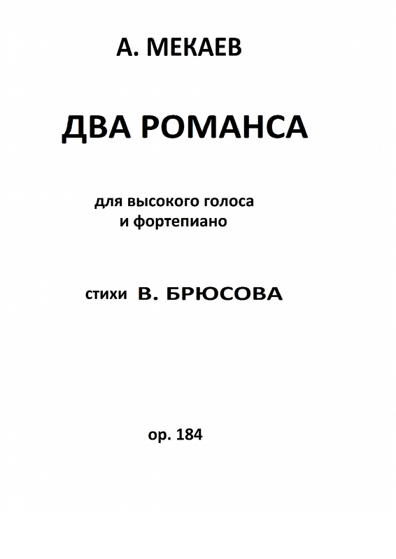 | Genre Categories | Romances; For voice, piano; For voices with keyboard; |