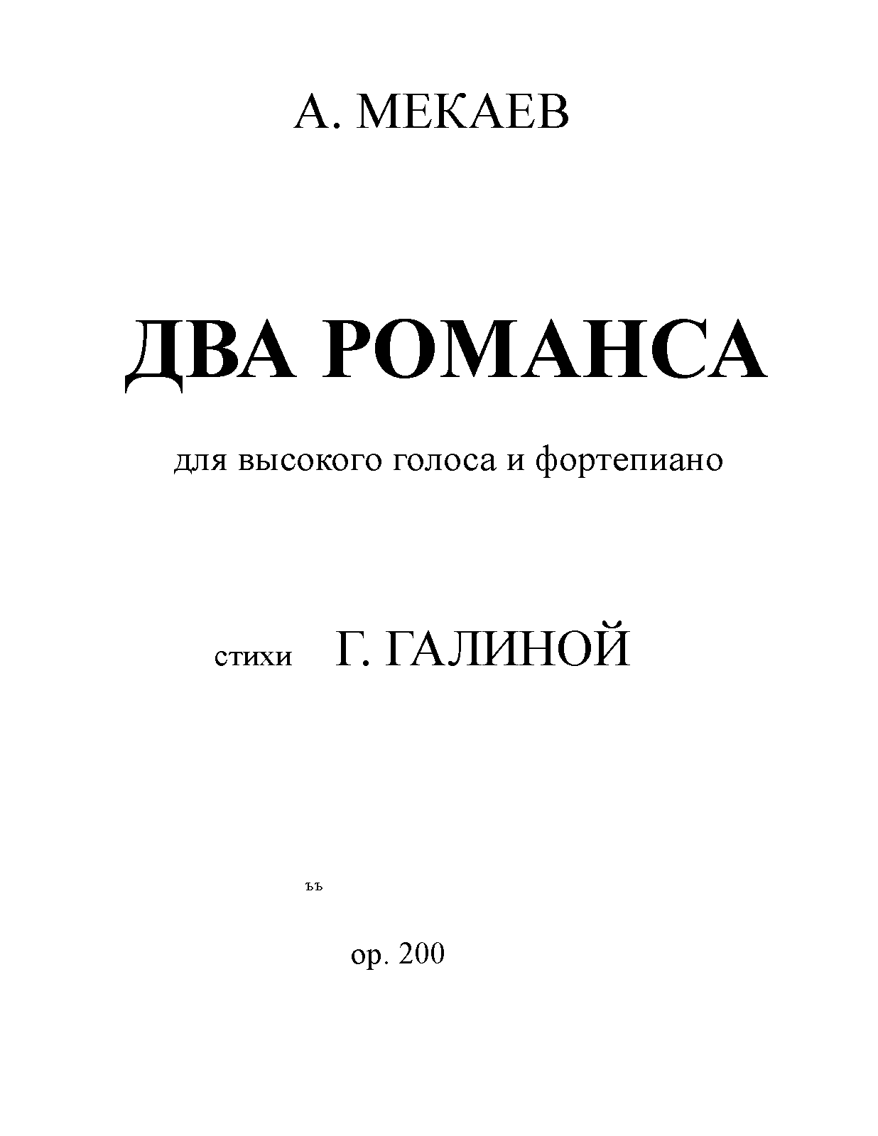 | Genre Categories | Romances; For voice, piano; For voices with keyboard; |
