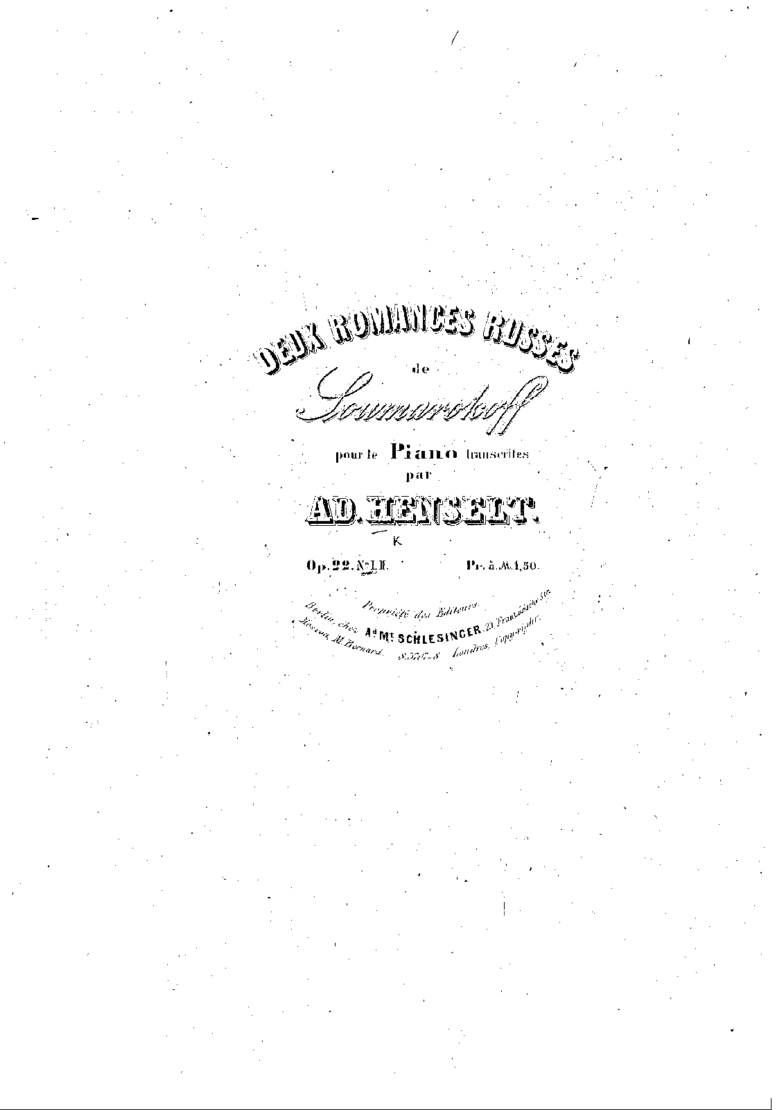 | Work Title | 2 Romances Russes de Soumarokoff, Op.22 |