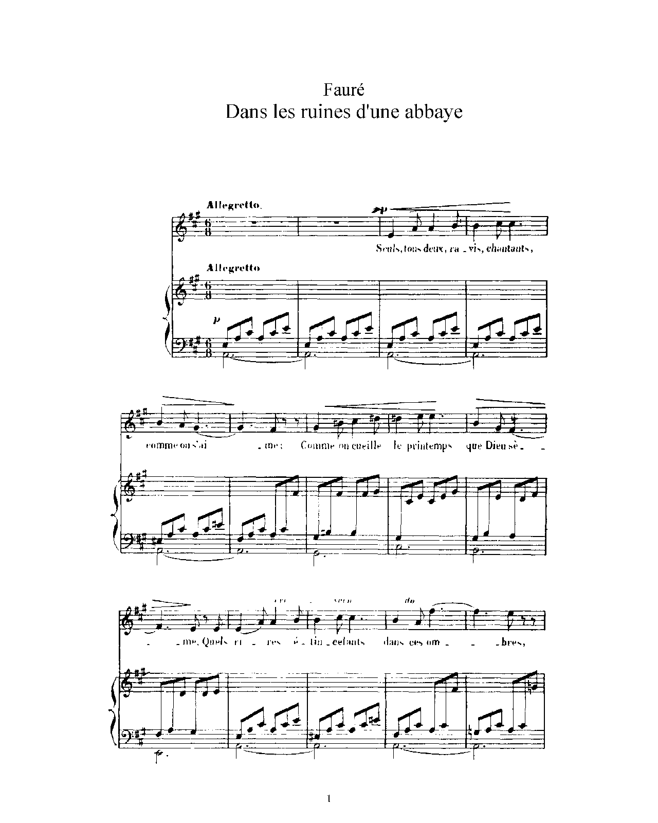 1. Dans les ruines d’une abbaye (Transposed to A major for high voice)