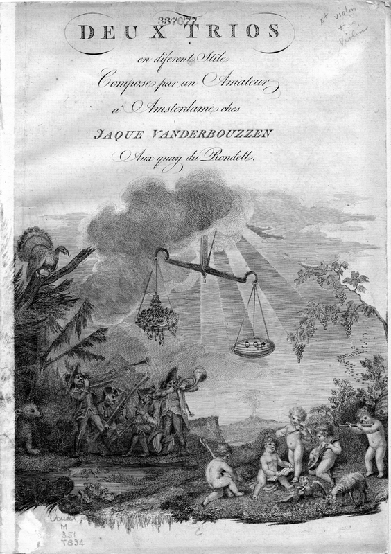 | Alternative. Title | Deux Trios en diferent Stile Compose par un Amateur a Amsterdam ches Jaque Vanderbouzzen Aux quay du Rondell |