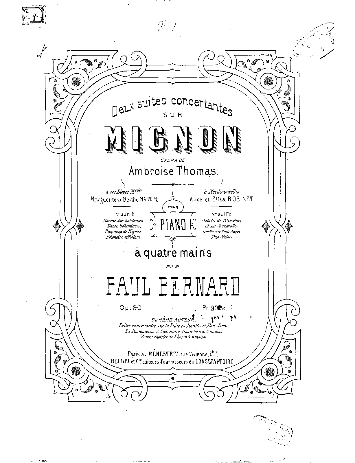 | Alternative. Title | Deux suites concertantes sur Mignon opéra de Ambroise Thomas pour piano à quatre mains |