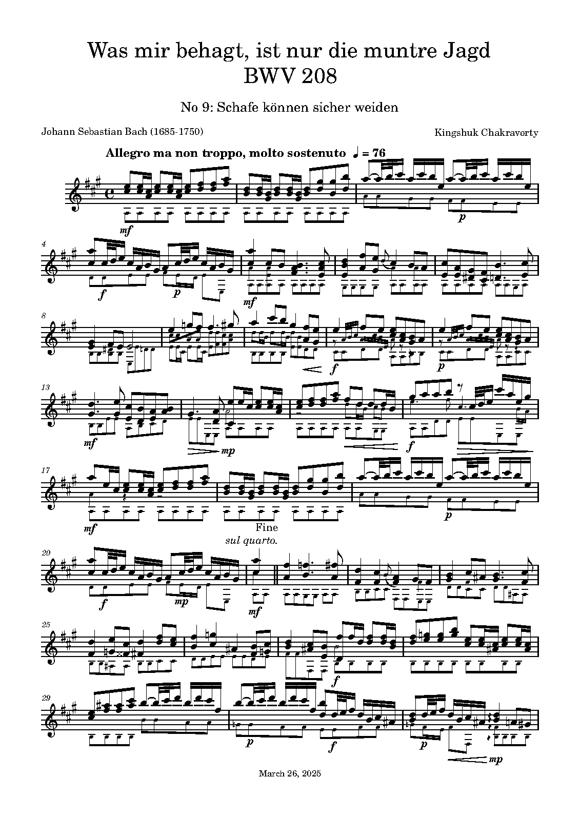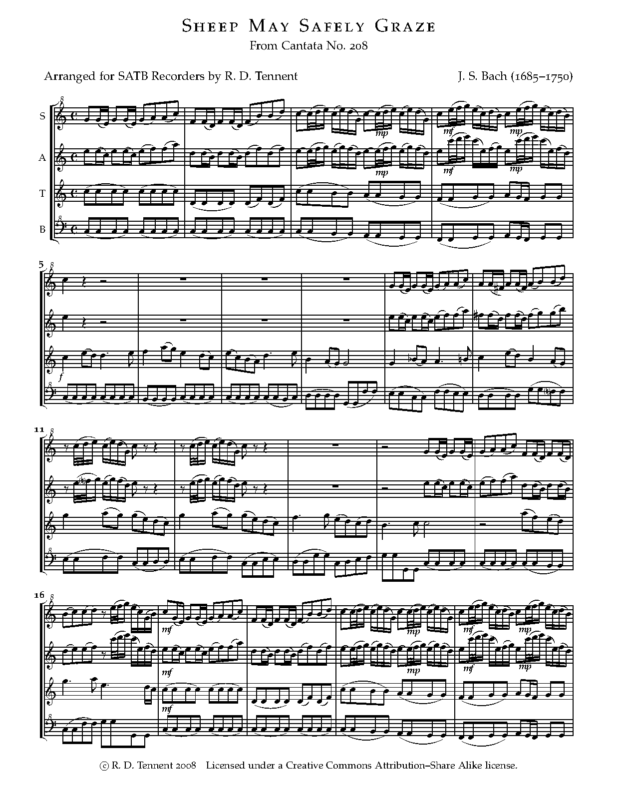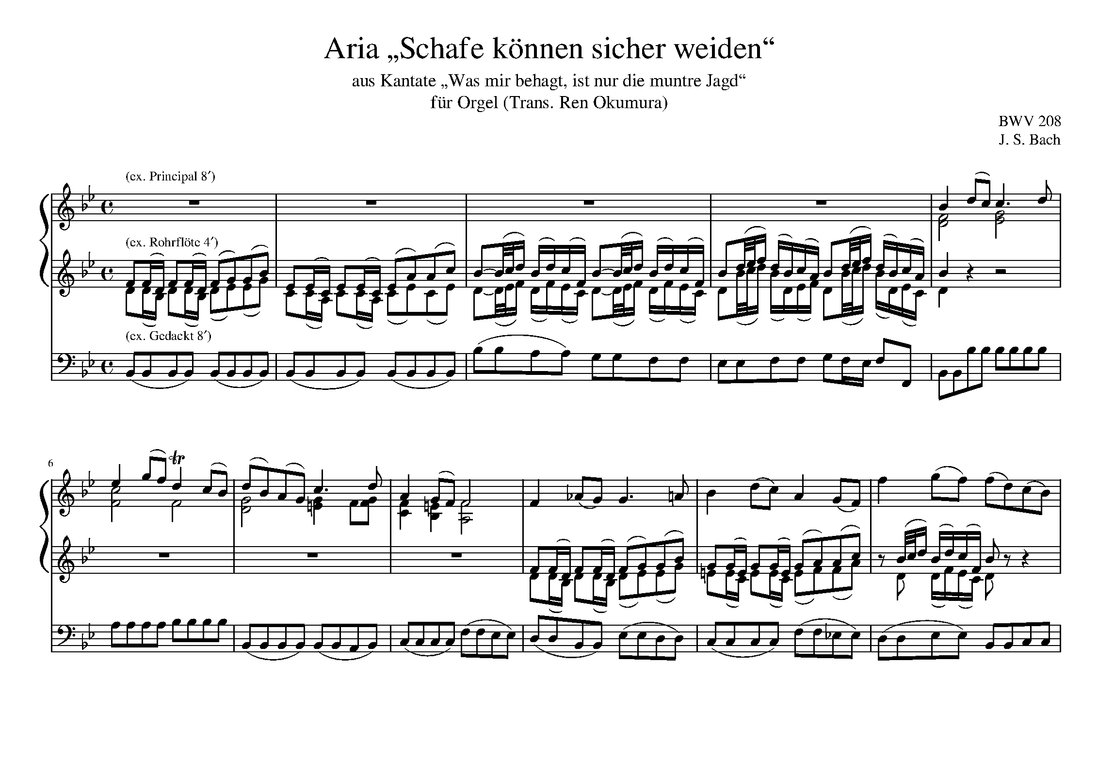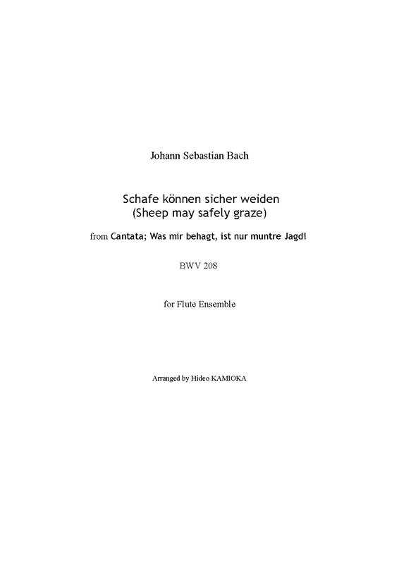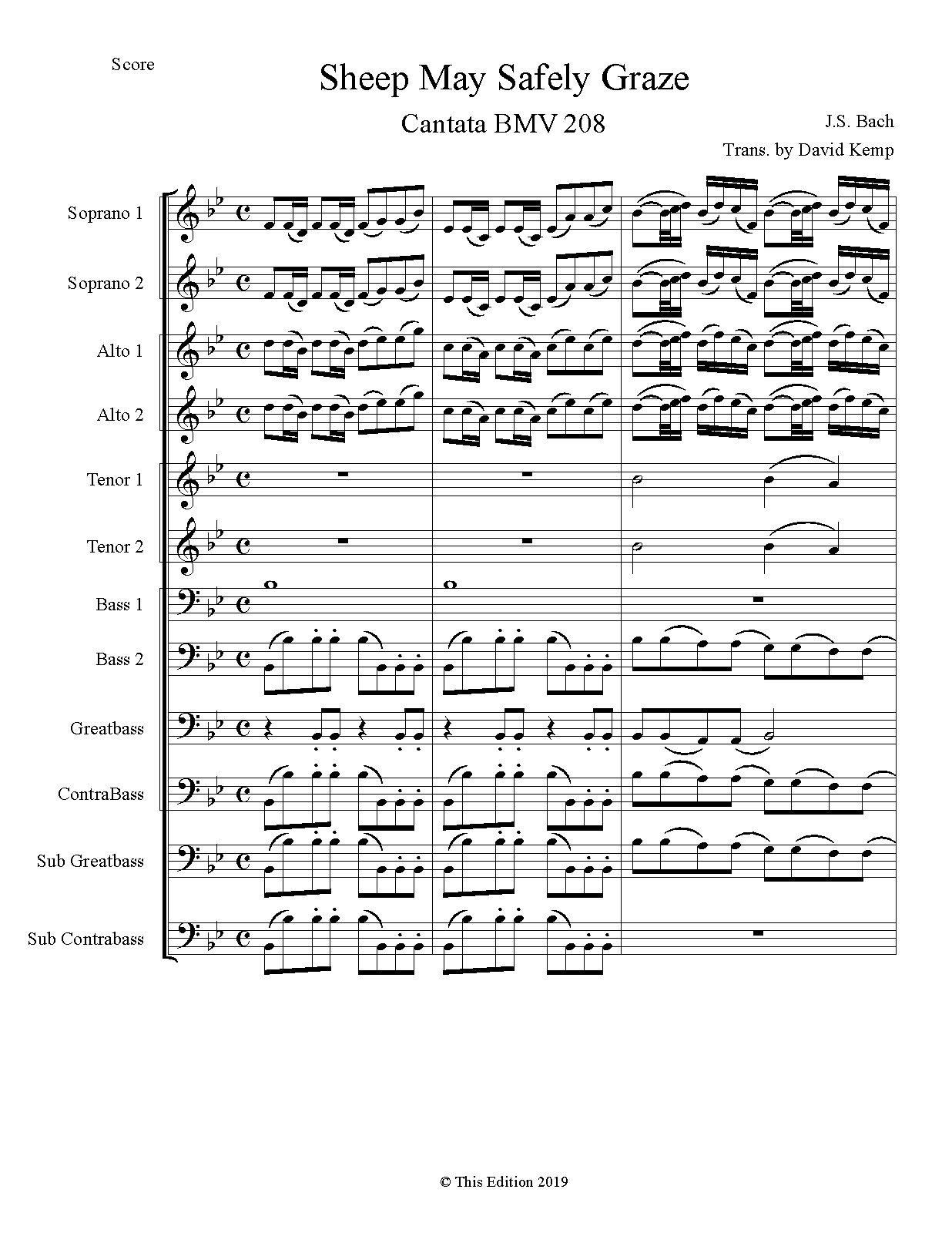 Misc. Notes Aria: 'Schafe können sicher weiden' (No.9) Transcribed for 12 Recorders - 2 Soprano 2 Alto 2 Tenor 2 Bass 1 Greatbass 1 Contrabass 1 Sub-Greatbass 1 Sub-Contrabass