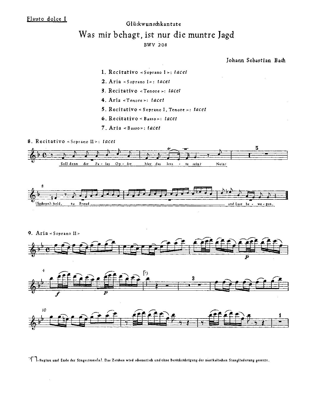 Opus/Catalogue NumberOp./Cat. No. BWV 208 ; BC G 1, 3, 27 ; (BWV 208a)