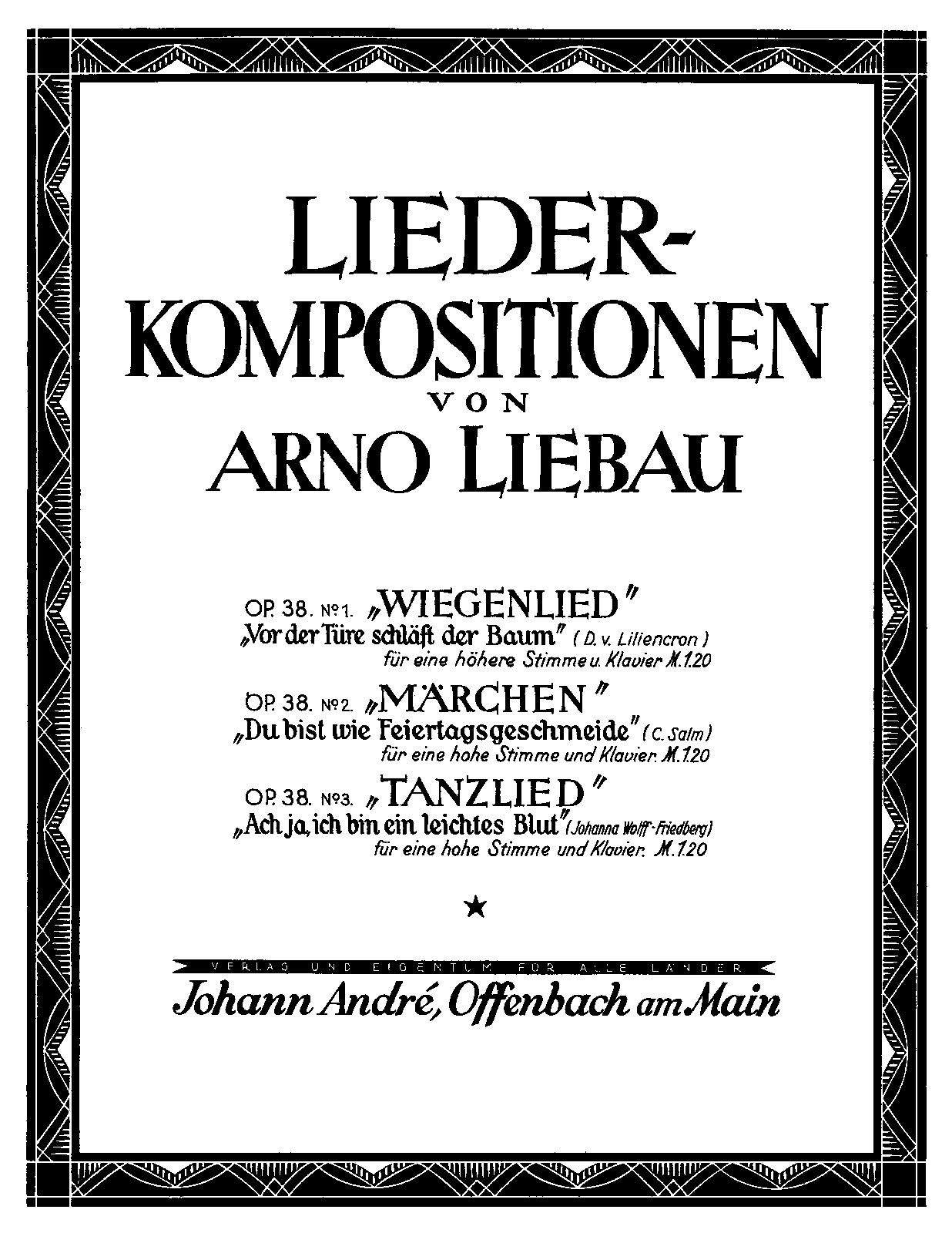 | Dedication | 3. Frau Opern- und Konzertsängerin Marie Flocke-Hagemann, meiner geschätzten Interpretin, zu eigen |