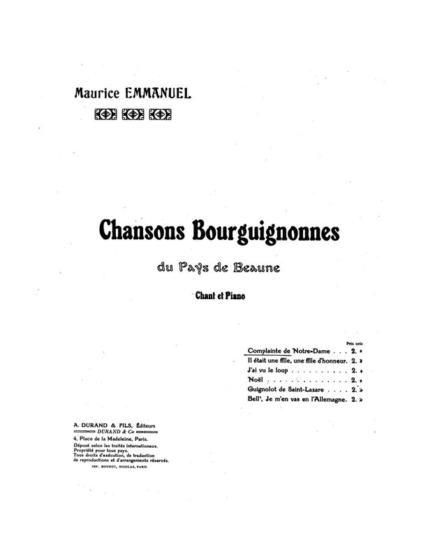 Contenu: 1. N° 14, Je t'aurai, ma brunette 2. N° 21, Guignolot d'Saint-Lazot 3. N° 26, Belle, je m'en vais en l'Allemagne 4. N° 23, Mère, mettez le chien cuire 5. N° 12, Le pommier d'août 6. N° 24, V'là qu'l'alouette chante 7. N° 4, Complainte de Notre-Dame 8. N° 20, Adieu bergère 9. N° 27, M'y allant promener 10. N° 13, La mal mariée 11. N° 6, Il était une fille 12. N° 7, C'est les gens de Bouze 13. N° 28, Les mois de l'année “La perdriole”
