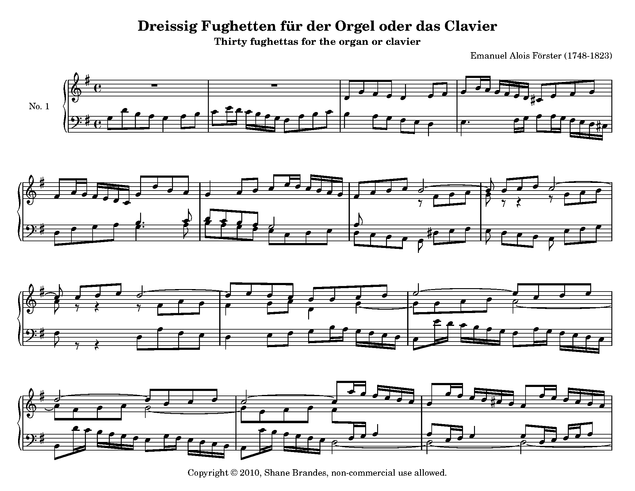⇒ 16 more: Fughetta 2 • Fughetta 3 • Fughetta 4 • Fughetta 5 • Fughetta 6 • Fughetta 7 • Fughetta 8 • Fughetta 10 • Fughetta 11 • Fughetta 12 • Fughetta 13 • Fughetta 14 • Fughetta 15 • Fughetta 16 • Fughetta 30 • Engraving files (Lilypond)