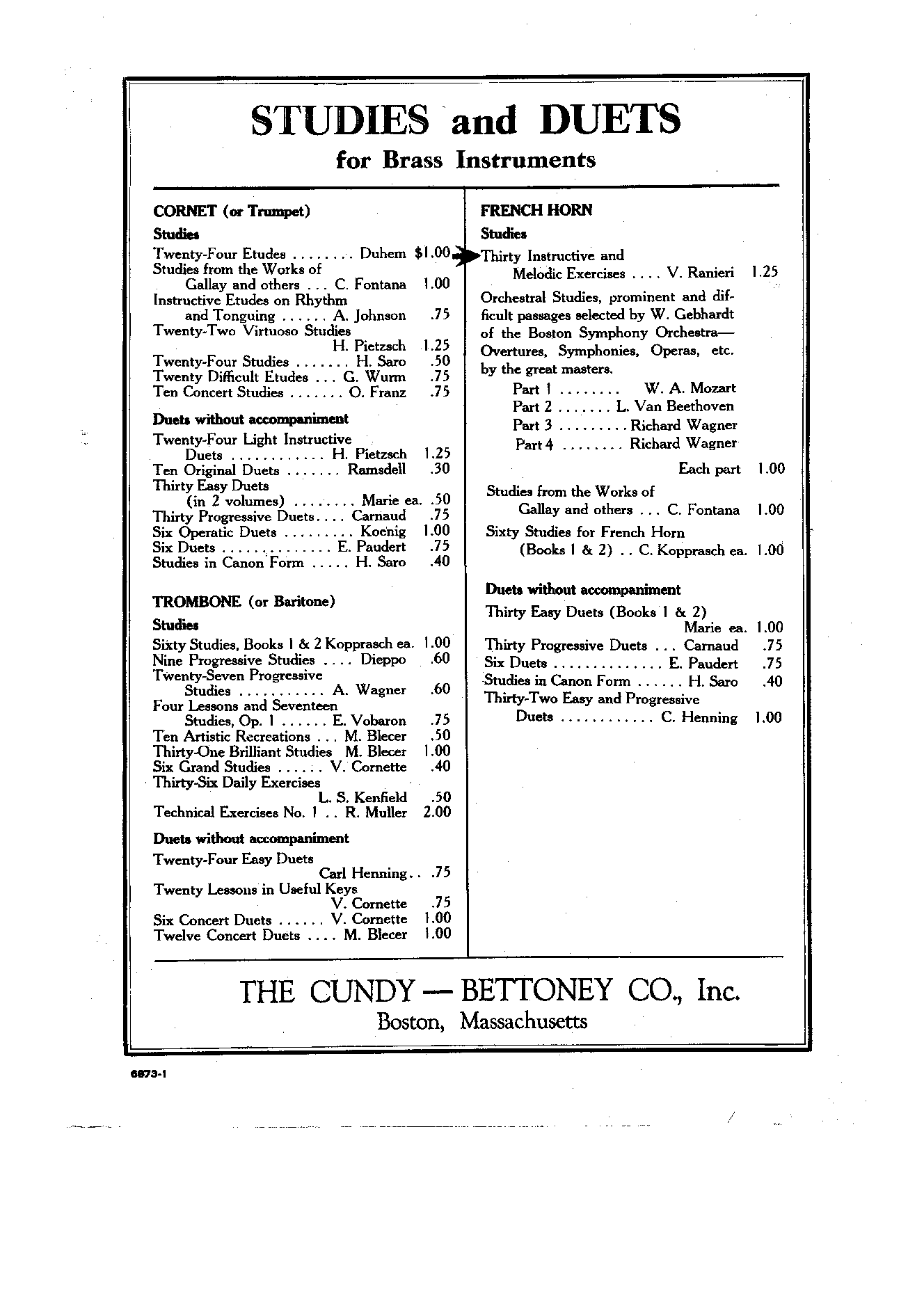 | Work Title | 30 Instructive and Melodic Exercises for the French Horn |