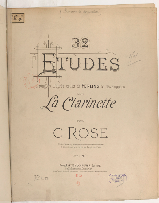 | Alternative. Title | 32 études pour la clarinette; 32 études arrangées d'après celles de Ferling et développées pour la clarinette |