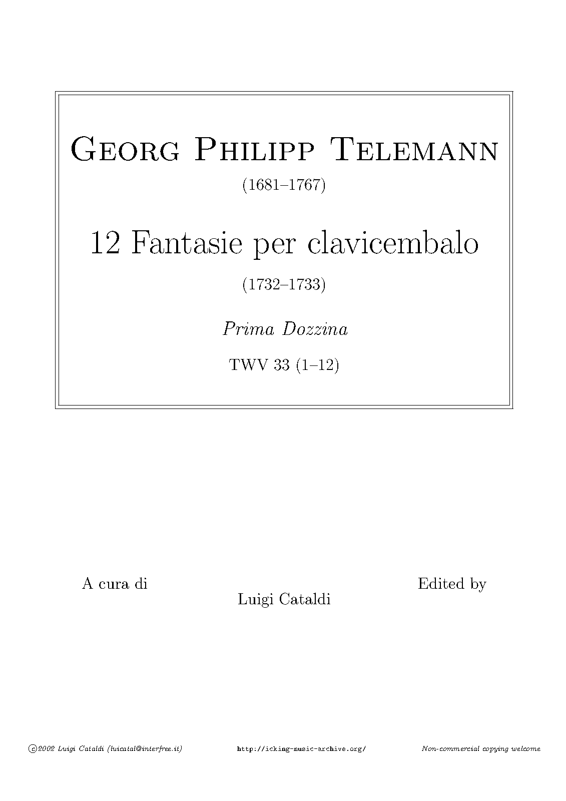 ⇒ 5 more: 2. Fantasia in D minor, TWV 33:2 • 3. Fantasia in E major, TWV 33:3 • 4. Fantasia in E minor, TWV 33:4 • 29. Fantasia in G minor, TWV 33:29 • 30. Fantasia in C minor, TWV 33:30