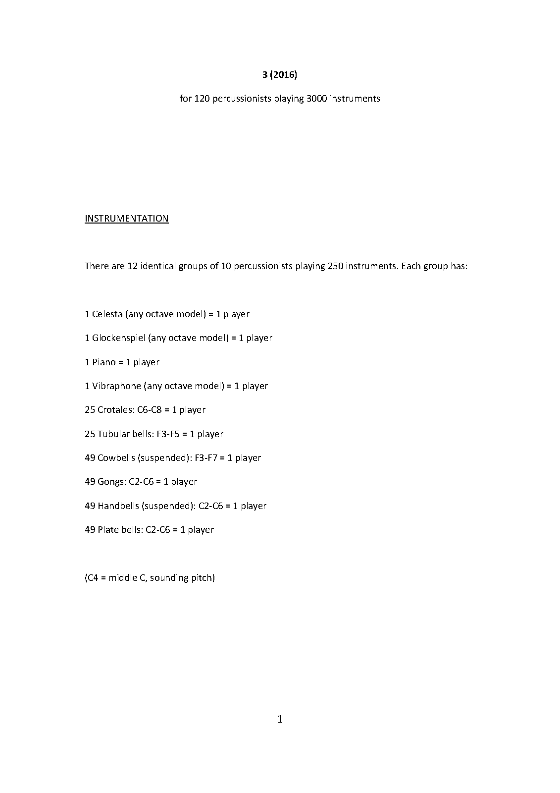 | Instrumentation | 120 percussionists playing 3000 instruments |
