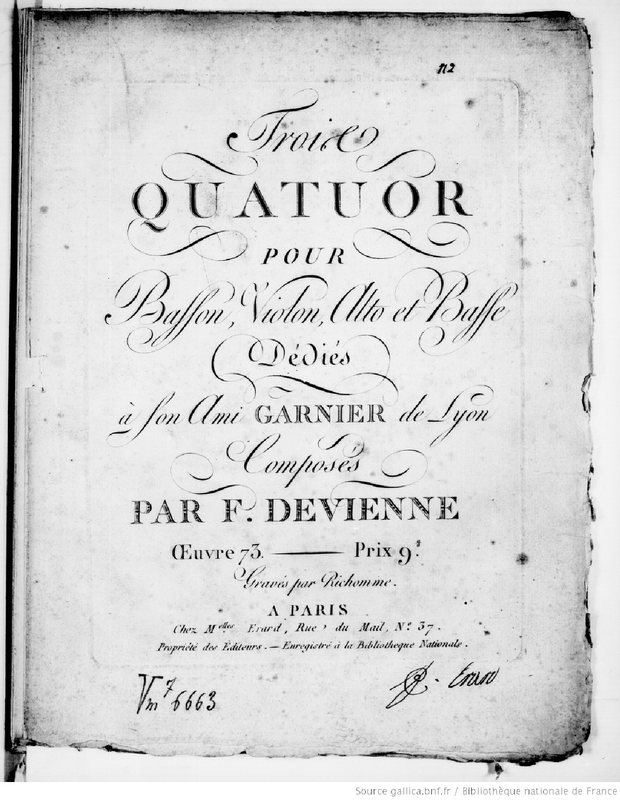 | Alternative. Title | Trois Quatuor pour Basson, Violon, Alto et Basse |