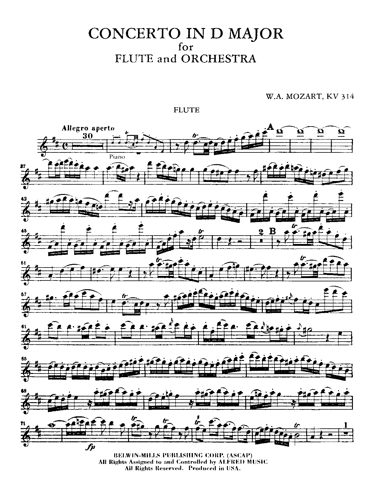 Flute Concerto in D major, K.314/285d (Mozart, Wolfgang Amadeus)