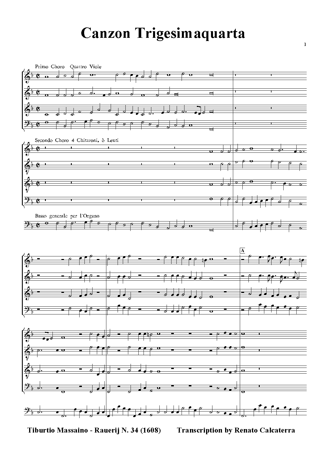 - Canzon Trigesimaquarta: 4 viole, e 4 chitarroni o leuti, organo e basso