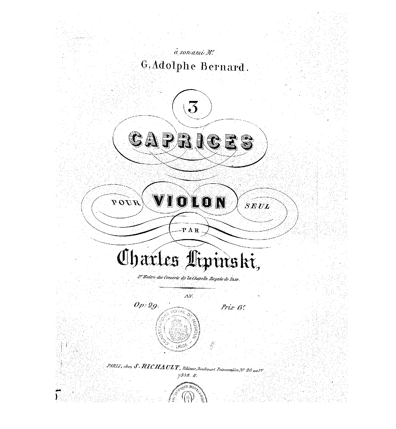 | Dedication | à son ami monsieur G. Adolphe Bernard |