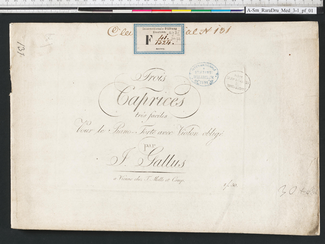 | Alternative. Title | Trois Caprices tres faciles pour le Piano Forte avec Violon oblige |