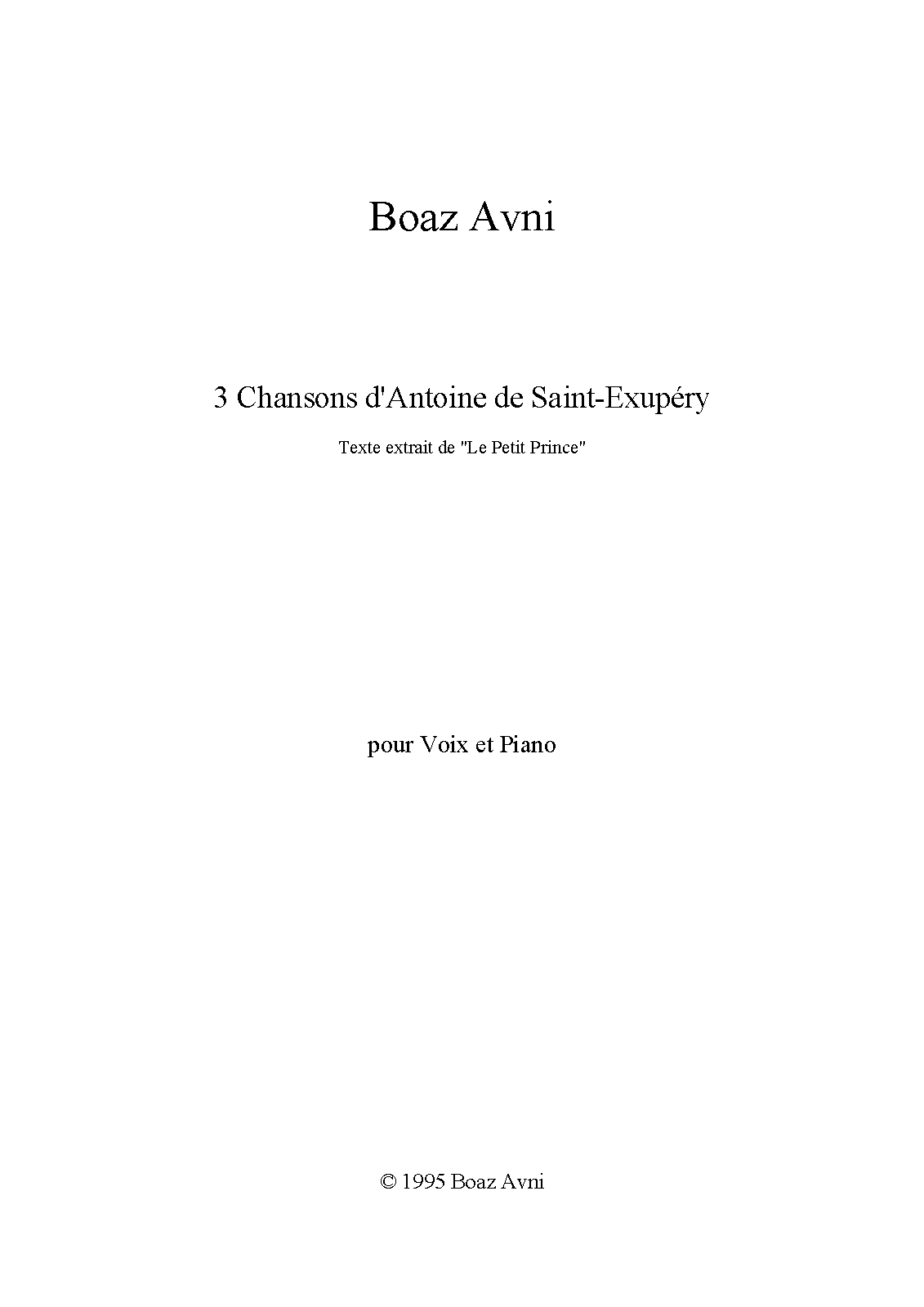 A song cycle for Voice & Piano. Text extracted from "Le Petit Prince" (The Little Prince). Corrected file - July 10, 2017