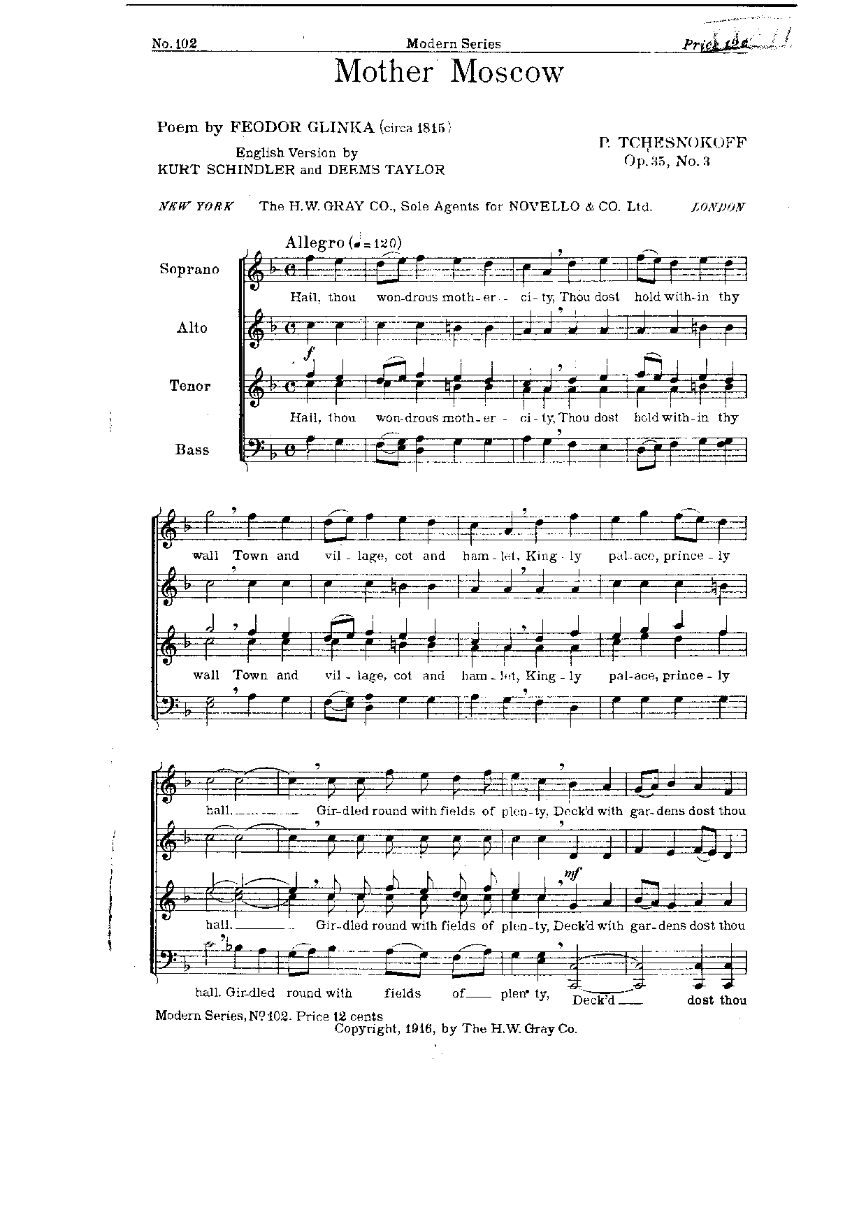 | Genre Categories | Secular choruses; Choruses; For mixed chorus; |