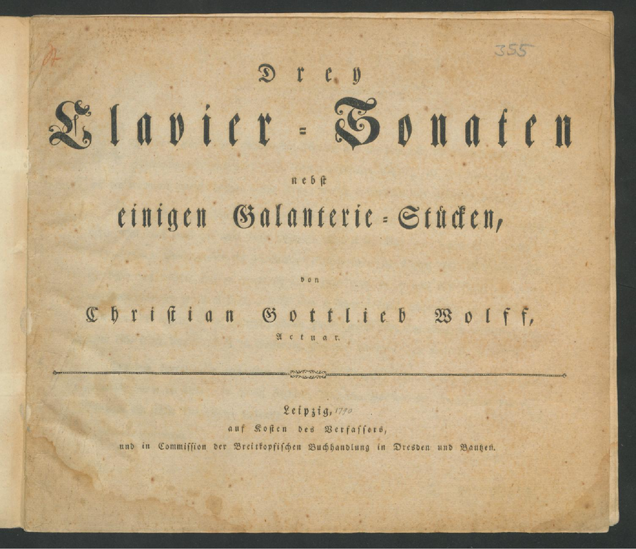 Drey Clavier-Sonaten nebst einigen Galanterie-Stücken, von Christian Gottlieb Wolff, Actuar