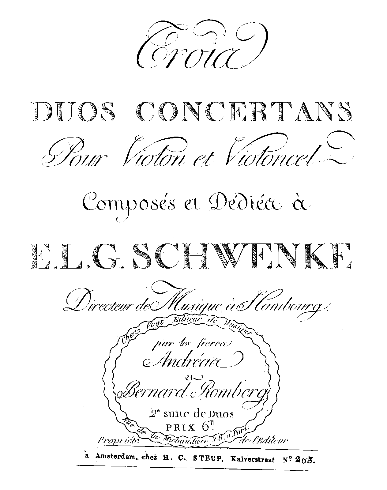 | Genre Categories | Duets; Concertantes; For violin, cello; |