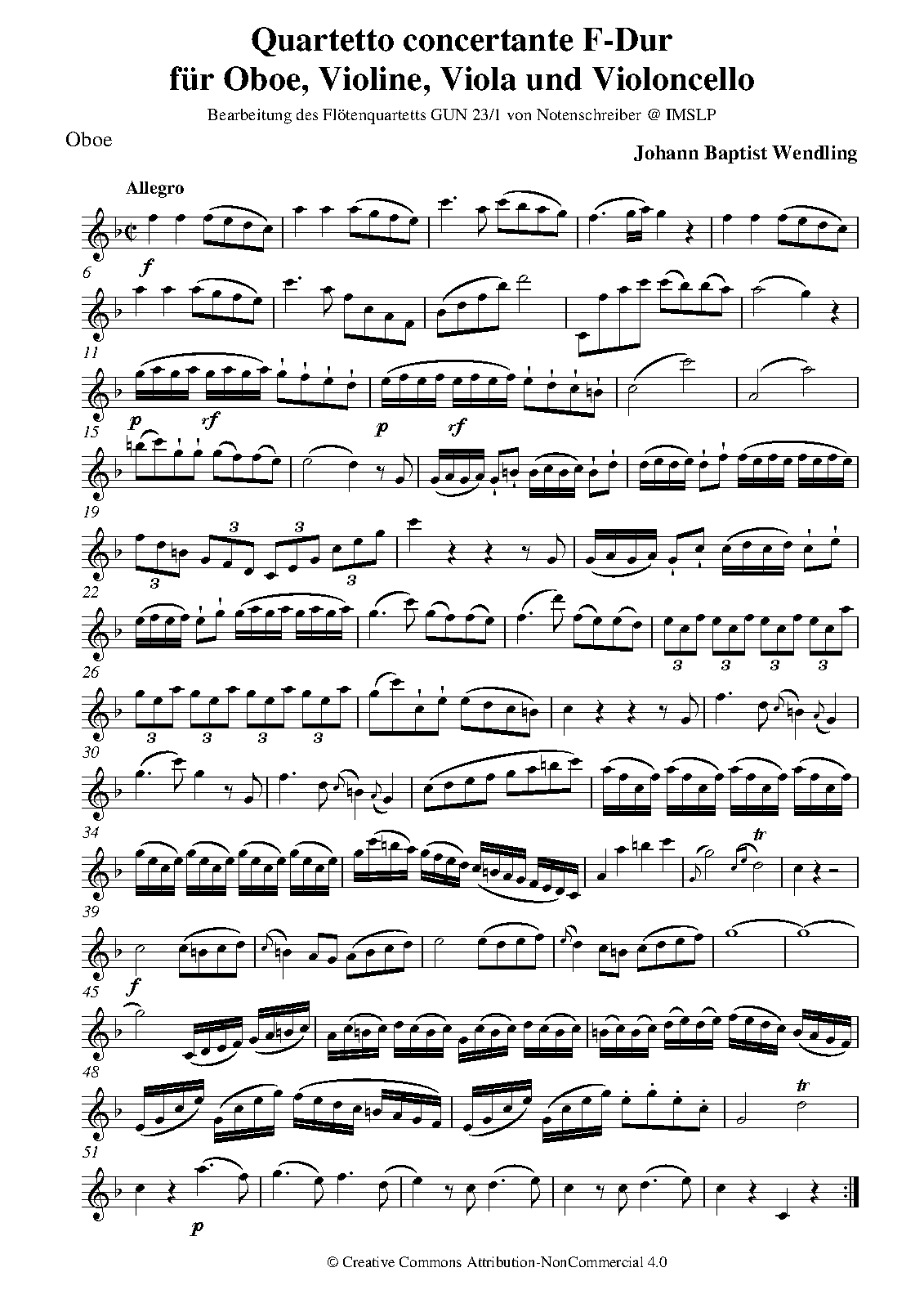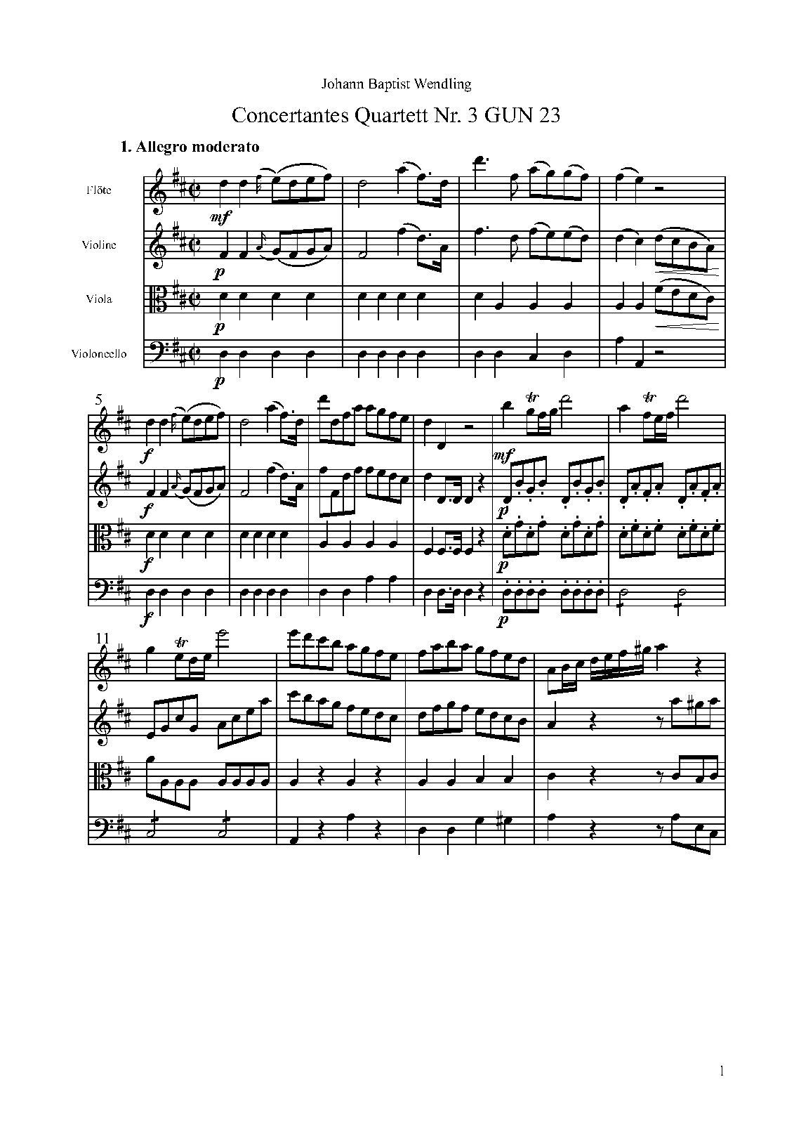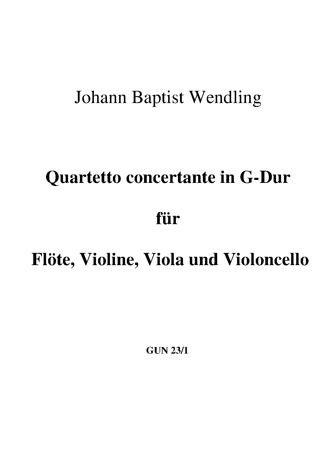 | Extra Information | Another flute quartet in G major was published in Denkmäler der Tonkunst in Bayern (1914) and in Nagels Archiv (1957) as by Wendling. These are two publications of the same quartet, despite different opus numbers (Op.10 No.6 and Op.10 No.4). Emily Jill Gunson clarified in her Ph.D.dissertation that this quartet is actually by F.H. Graf, see his Flute Quartet in G major, Op.5 No.5. |