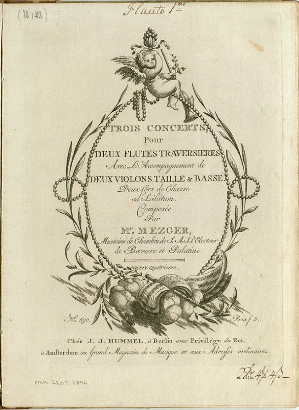 | Work Title | 3 Concerts pour 2 Flutes Traversieres Avec L'Accompagnement de 2 Violons, Taille & Basse. 2 Cors de Chasse ad Libitum |