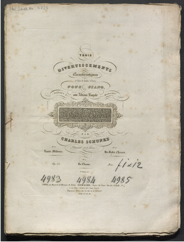 | Dedication | À son Altesse Royale Madame la Duchesse d'Orléans (Helene Herzogin von Orleans, 1814–1858) |