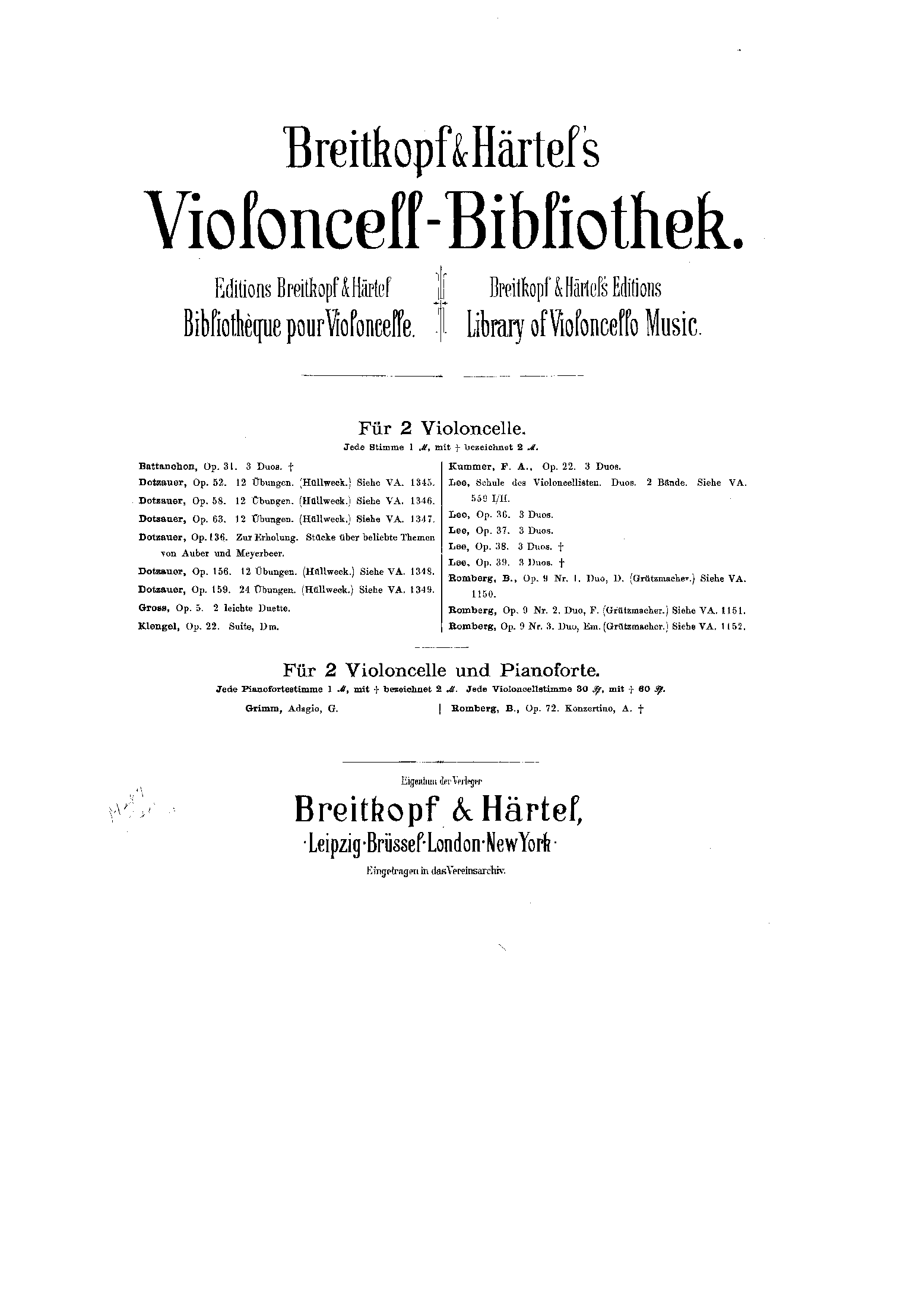 | Genre Categories | Duets; For 2 cellos; Scores featuring the cello; For 2 players |
